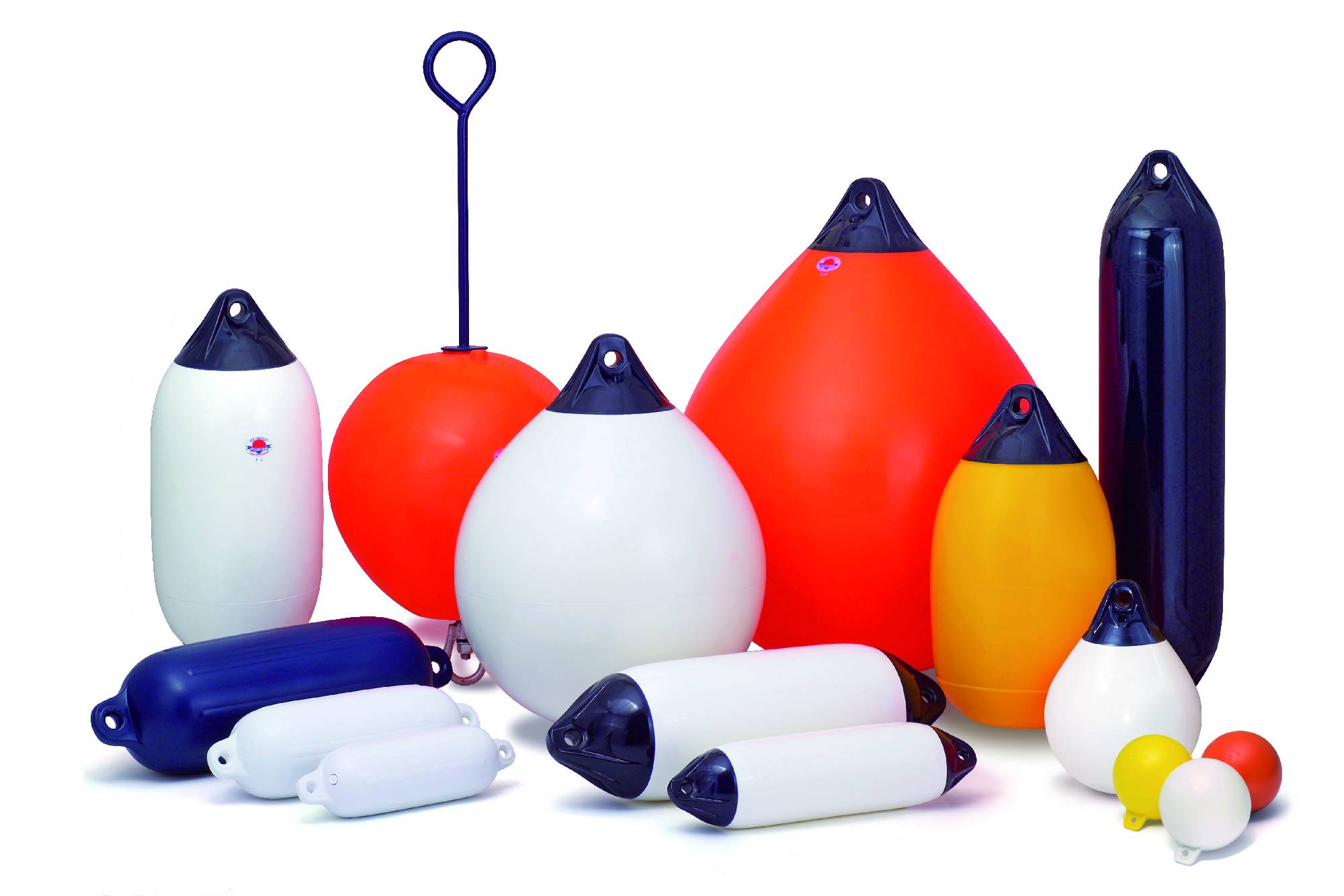 Inflatable buoys and fenders made from soft Vinyl plastics.